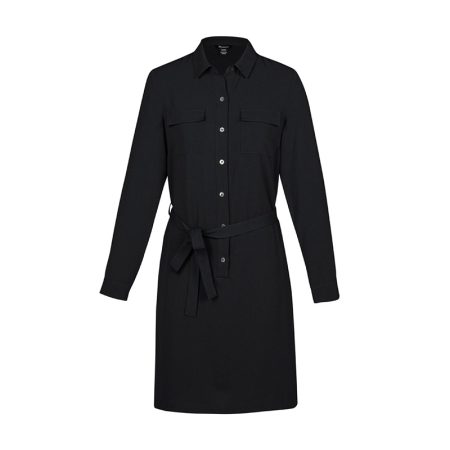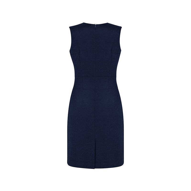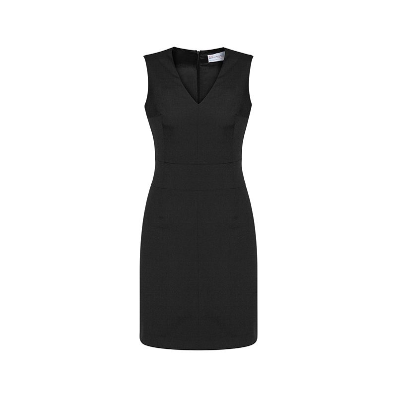 Elegant dress designed to be worn on its own or layered. With natural drape, full lining and a concealed back zip.